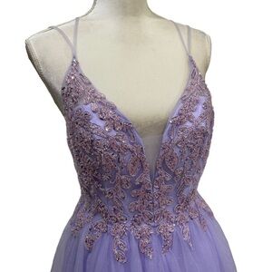 New without original tags(has generic replacement store tag attached) Coya Collection Floral Embroidered Open V Back Tulle Fit and Flare Dress