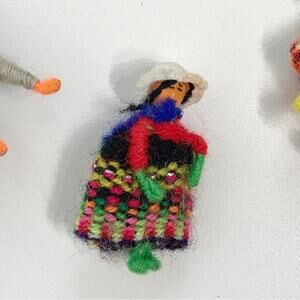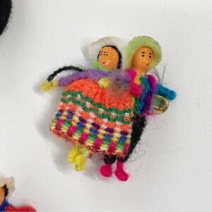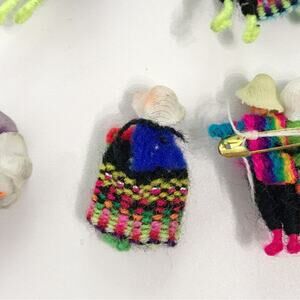 Coya Peru Hand Knitted Worry Doll Pin Lot Bundle Of 4 Pins Brooch and 1 Doll