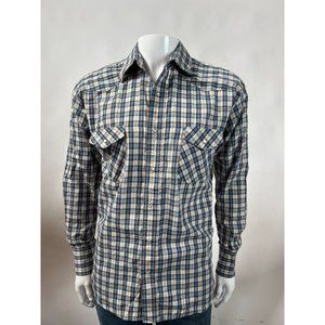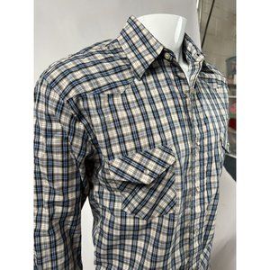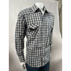 Coyote Mood Pearl Snap Western Shirt LT Blue Plaid 65% Polyester 35% Cotton