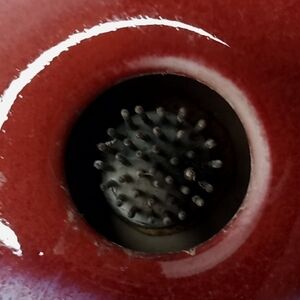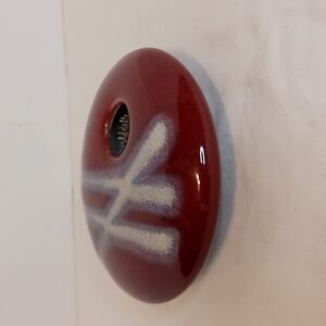 This is a very collectible piece. It's made in Montana by Coyote Roadhouse marked on the bottom with an Utsuwa mark, which is a howling wolf in a circle. (see pictures) This piece holds water and flowers in position in the spikes. Very nice piece. No chips or cracks. It measures about 5.5" wide and 1.5" tall.