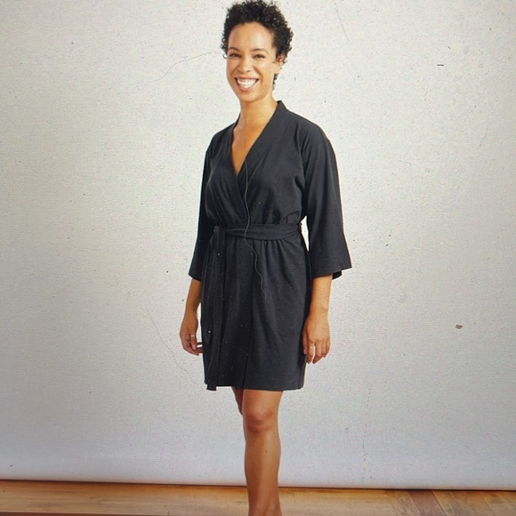 Luxurious black women's robe by Coyuchi. Perfect for comfort and style.