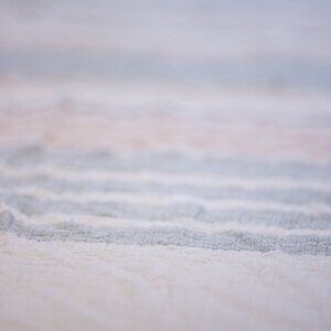 Each Topanga blanket is unique, woven from the purest organic cotton. The soft, rippled weave creates an airy, pliable shape that will expand and contract over time—much like the waves and breaks along the California coastline that inspired it. This featherweight layer flows into waved edges, secured with a tiny zigzag stitch to hold the fringe in place.