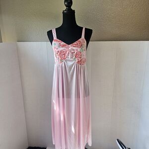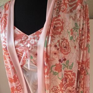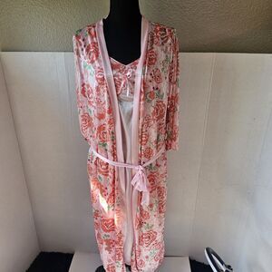 Cozee Corner Women's Robe Gown Set Pink Floral Sz Large Lightweight Comfort F101