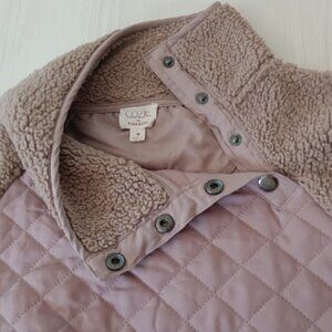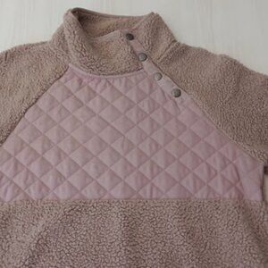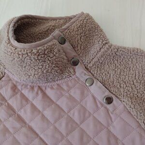 Cozie by Pink Rose MED Pull Over Sweater Buttons up Neck Quilted Diamond