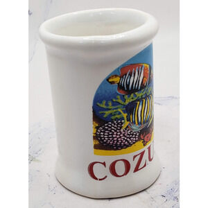 Cozumel Mexico Souvenir Miniature White Ocean Fish Ceramic Toothpick Holder Mug