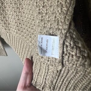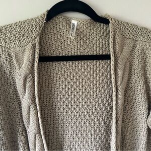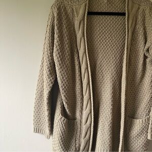 Stay warm and stylish with this cozy beige knit cardigan. Perfect for layering, this sweater adds a touch of elegance to any outfit.