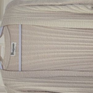 Stay warm and stylish with this cozy beige open-front cardigan. Perfect for layering, this sweater adds a touch of elegance to any outfit. Runs like a large. New w/tags. Smoke-Free Home