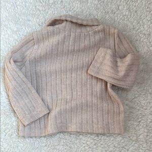 Stay warm and stylish with this cozy beige ribbed sweater. Perfect for any casual outing.