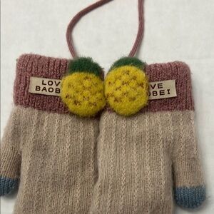 Keep your child's hands snug with these charming mittens. Featuring a delightful beige and blue design with playful pom-poms, they're perfect for any adventure.