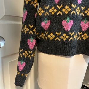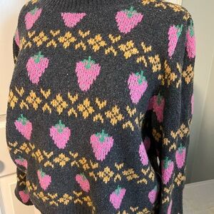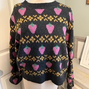 Cozy Black Sweater with Strawberry and Yellow Patterns