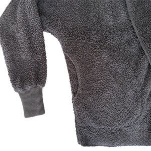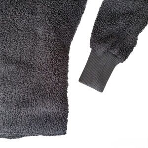 Stay warm and stylish with this cozy black teddy jacket. Perfect for layering, this jacket offers comfort and a chic look.