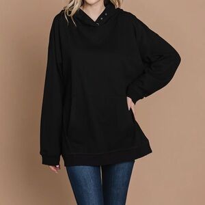 Women's Cotton Soft Terry Hood Top W/ Button Detail