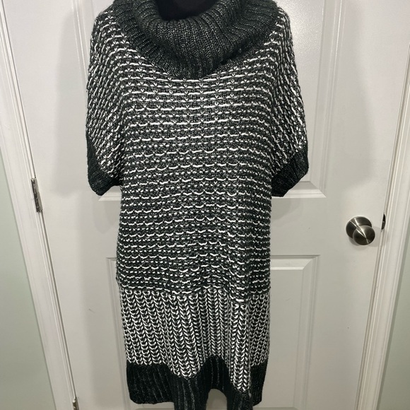 Cozy Black and White Knit Sweater Cowl neck Poncho Size 18/20 CB-70