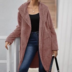 Cozy Black oversized Open Front Hoodie Teddy Jacket