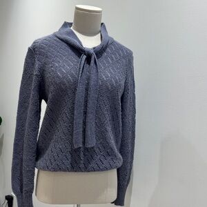 Stay warm and stylish with this cozy blue cowl neck sweater. Perfect for any occasion.