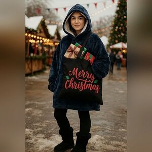 Snuggle up in ultimate comfort with this NEW Without Tags oversized hoodie blanket Made from plush royal navy fleece with a soft full sherpa-lined cozy perfect for chilly days and nights roomy one size features Velvet ultra-relaxed fit large front kangaroo pocket extra-long sleeves lounging, movie nights warm on the go travel vacation dorm shopping Winter Fall Holiday Festival Packable Comfortable Slip-On Minimalist Farmhouse Holiday Birthday Girlfriend Boyfriend Gift Unisex Teddy Walking The Dog Camping Atleasure Adventure Sleepover