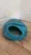 Soft and stylish pet cave in blue with gray stripes. Perfect for small pets like cats or small dogs. Made out of wool, so machine washable and naturally warm and odor resistant. Measurements shown in picture. Held a 15 pound cat during cold winters.