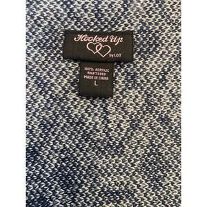 Cozy Boho Southwest Fringe Cardigan Sweater Open Front Waterfall Hem Blue Red L