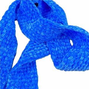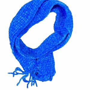 Super soft long skinny fringed crochet scarf in bright blue. No tags. Due to light & screen variations, colors may vary slightly from the images