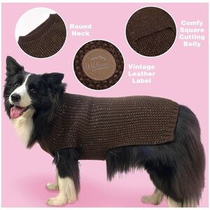 Warm and stylish brown knit sweater for dogs. Perfect for chilly days.