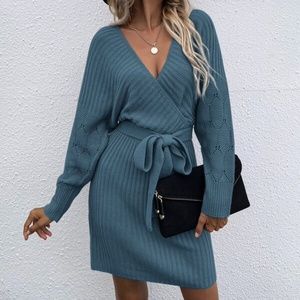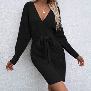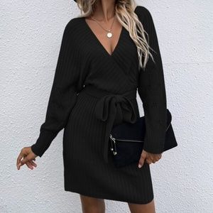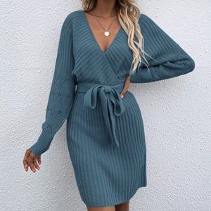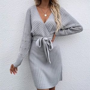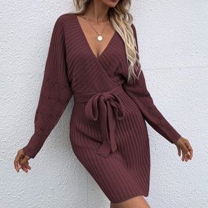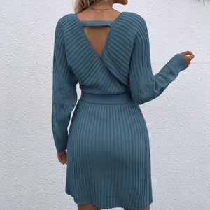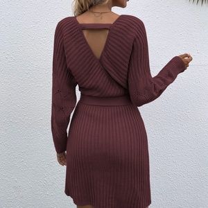 Cozy Burgundy Cut out Back Belted Sweater Dress