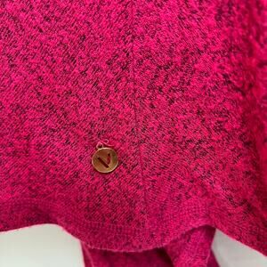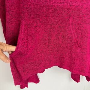 Livi pink-fuchsia cowl-neck tunic blends modern minimalist design with cozycore, cabincore, and romantic casual plus-size style. Wrap yourself in soft, cabin-inspired comfort crafted for relaxed confidence. The marled pink-fuchsia rayon-blend knit evokes warmth and charm, while its asymmetrical drape and slit cuffs add effortless movement. A relaxed cowl neckline and discreet metal logo reflect quiet luxury polish.