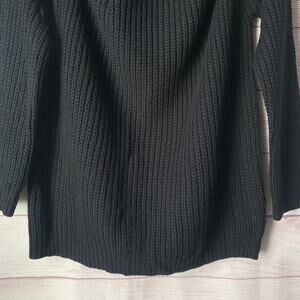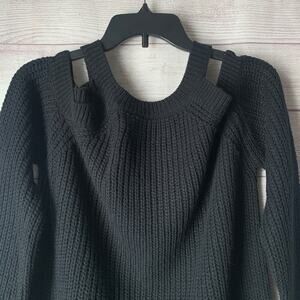 Cozy Casual Black Cold Shoulder Ribbed Knit Sweater Long Sleeves Size S/M