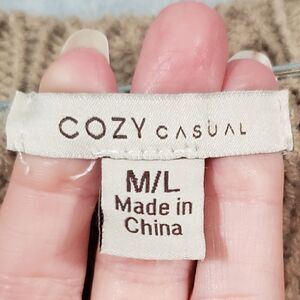 COZY CASUAL Women's Size M/L Tan V Neck Knit Fringe Trim Sweater