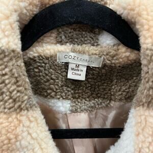 Cozy Casual Plaid Sherpa Teddy Bear Full Zip Jacket Pockets