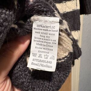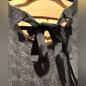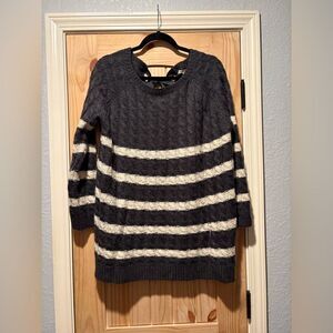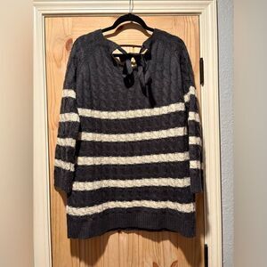 Cozy Casual Sweater Womens Small Medium Grey Cream Striped Ribbon Tie Oversized
