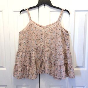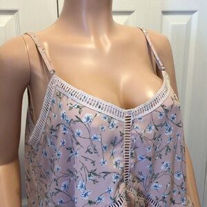 Cozy Casual Womens Pink Floral Ruffled Cami Tank Top Size Large. Very good condition with no flaws. From smoke free home.