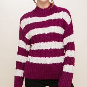Cozy Chunky Cable Knit Color Block Sweater Top