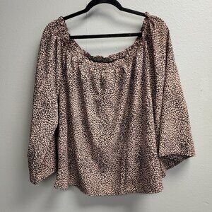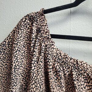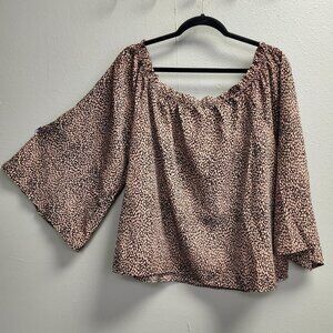 Cozy Co. Blouse Womens 1X Black Beige Animal Print Flowy Bell Sleeve Top