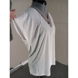 Cozy Co By Cozy Casual Womens Solid V Neck Embroidered Tops White Size X Small