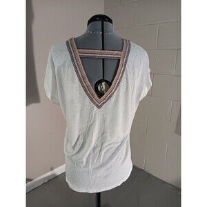* Cozy Co By Cozy Casual Womens Solid V Neck Embroidered Tops White Size X Small Banded Accent Neckline Deep V Neck Back Line