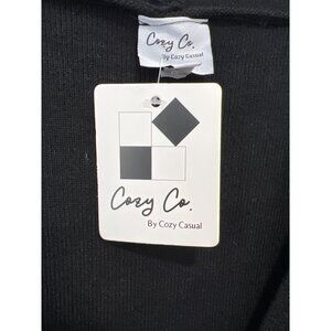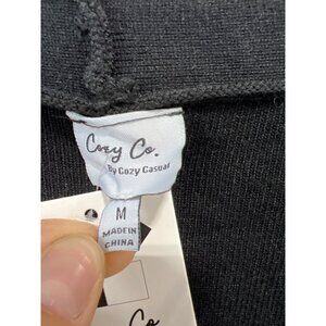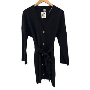 Cozy Co Tie Waist Button Front Mini Sweater Dress Size Medium V Neck Black NEW