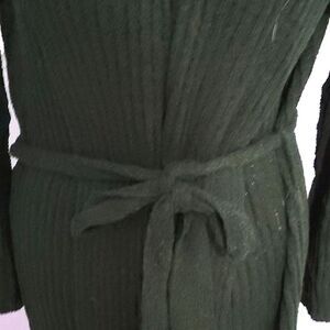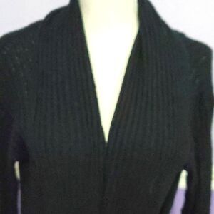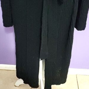 Cozy Co by Cozy Casual Black Tied Waist Pointelle Knit Longline Duster Cardigan