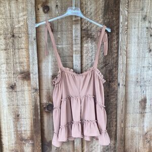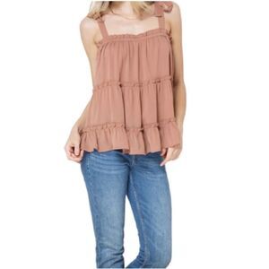 Cozy Co. Casual Boutique Sand Tiered Shoulder Tie Strap Woven Tank