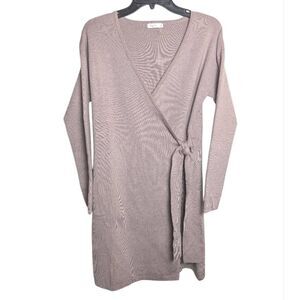 Cozy Co. Light Mauve Pink Stretch Sweater Knit Wrap Dress Duster Womens L