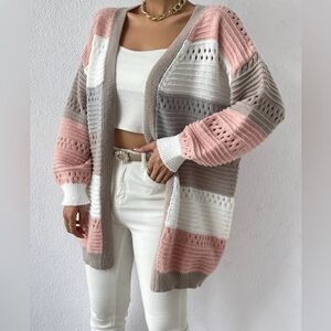 Cozy Color Block Open Front Loose Fit Cardigan