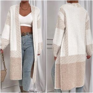 Cozy Color Block Stripes Fuzzy Open Front Cardigan