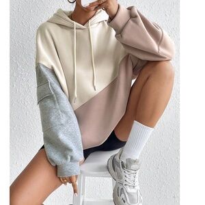 Cozy Color Block pockets Loose Fit Hoodie Sweatshirt Top