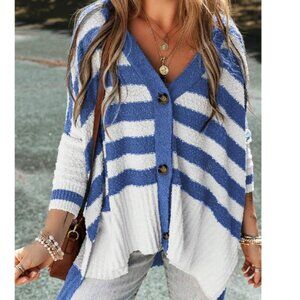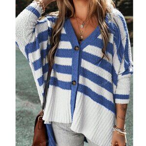 Cozy Color block Striped Button Down Oversized High Low Cardigan