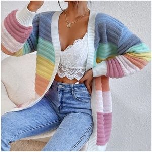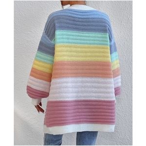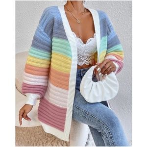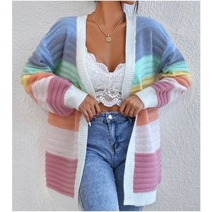 Cozy Colorblock Open Front Stripes Oversized Cardigan