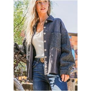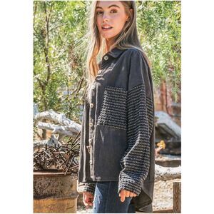 Cozy Corduroy Pockets Button Down Denim Jacket Shacket