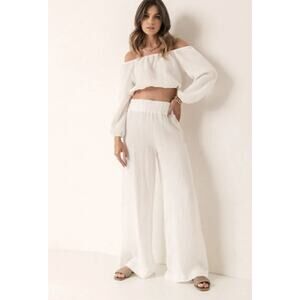 Embrace effortless style and ultimate comfort with the Cotton Breeze Set. Crafted from 100% breathable cotton, this off-shoulder long sleeve top and matching pants set offers a relaxed yet chic look that's perfect for any occasion. Whether you're lounging at home or stepping out for a casual day, this lightweight, soft-to-the-touch set will keep you feeling cool and looking fabulous. The versatile design and natural cotton fabric make it a must-have for year-round wear. Pair it with your favorite accessories for an effortlessly put-together outfit!"