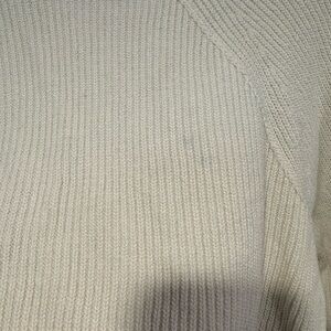 Soft knit sweater with long sleeves. Perfect for layering. Flawed. Has some spots as pictured, haven’t tried to treat, size extra small. Soft sweater