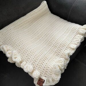 Keep your little one warm with this cozy cream crocheted hat and blanket. Perfect for any outing. Great baby shower gift for girl or boy, and perfect for bringing baby home from hospital.