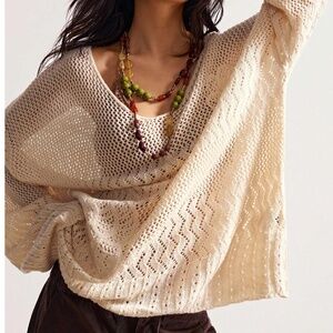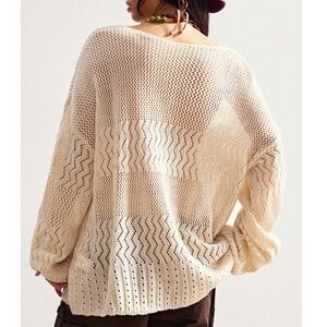 Cozy Cream Loose Knit Floral Patch V neck Oversized Sweater Top