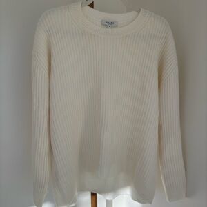 Stay warm and stylish with this cozy cream ribbed sweater. Perfect for any casual outing.
